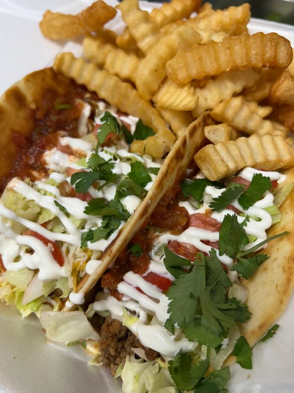 Pick A Protein & We've Got The Rest. Hot Golden Fries, Taco Cheese, Lettuce, Tomatoes, Salsa, Lime Sour Cream & Cilantro